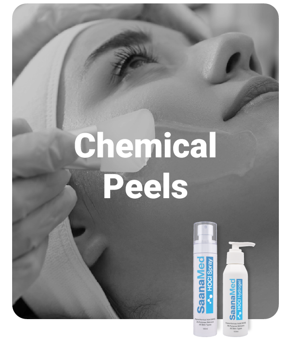 SaanaMed HOCl’s antimicrobial properties disinfect the skin before and after peels, reducing the risk of infections on newly exposed skin. Its anti-inflammatory effects soothe redness and irritation, while its non-toxic, non-irritating nature makes it safe for sensitive, peeled skin.
