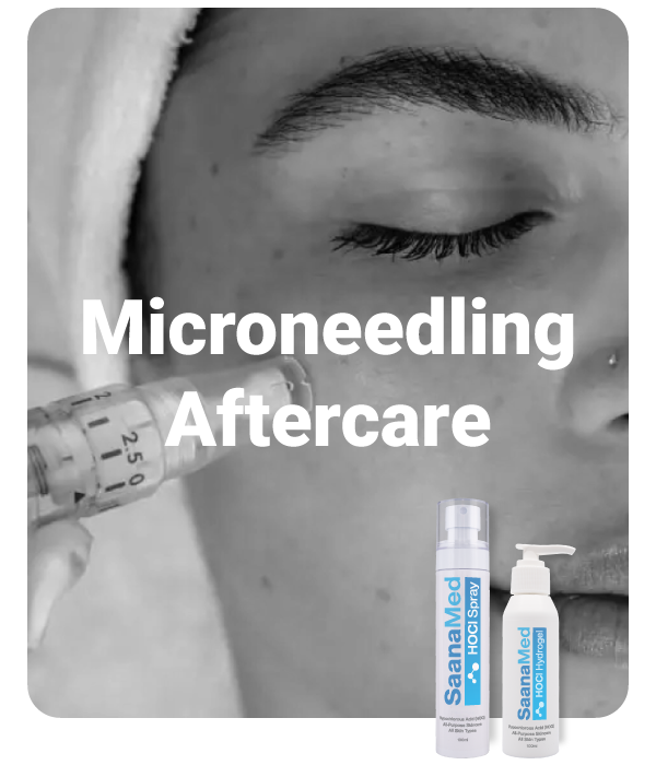 HOCl’s antimicrobial action prevents infections by targeting bacteria in microchannels created during microneedling. Its anti-inflammatory properties reduce redness and swelling, while its non-irritating, non-toxic nature ensures safety for compromised skin. SaanaMed HOCl enhances healing without disrupting the collagen-building benefits of microneedling.