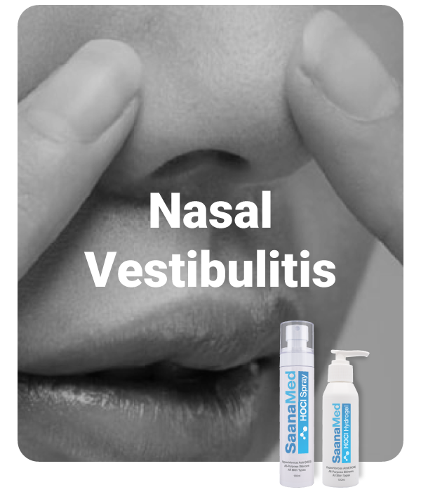 SaanaMed HOCl’s powerful antimicrobial action targets bacteria like Staphylococcus aureus, a common cause of nasal vestibulitis, without harming delicate tissues.