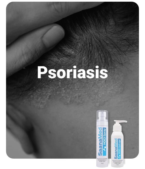 SaanaMed HOCl’s antimicrobial properties reduce bacteria and pathogens that can exacerbate psoriasis plaques, while its anti-inflammatory effects alleviate redness, itching, and scaling.