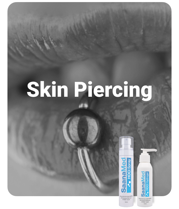 HOCl’s antimicrobial action prevents infections by neutralizing bacteria around piercing sites, which are prone to contamination. SaanaMed HOCl supports healing without interfering with the piercing or modification process.