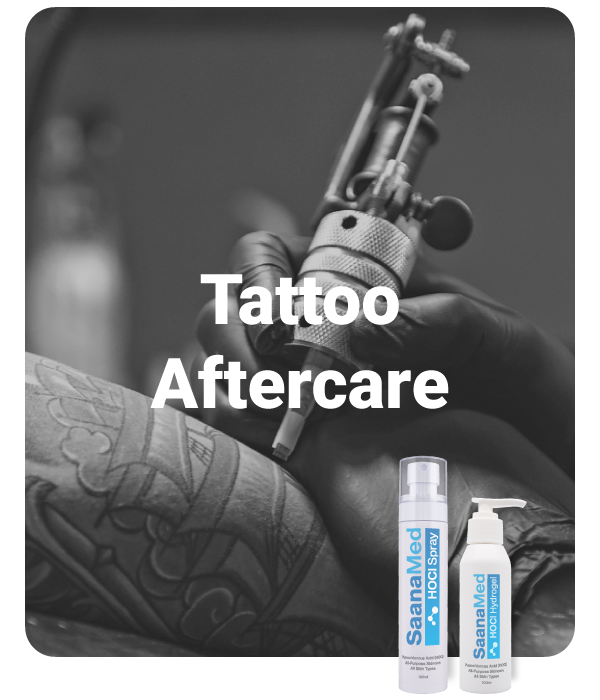 HOCl’s antimicrobial properties prevent bacterial infections that can compromise tattoo healing, while its anti-inflammatory effects reduce redness, swelling, and irritation. Safe for sensitive skin, SaanaMed HOCl is non-toxic and non-irritating, supporting the skin’s natural repair process without fading ink or causing discomfort.